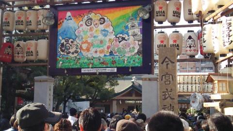 通称、「えべっさん」という商売の神様の名で知られ、今宮戎神社で祭られているのです。南海本線のなんば~今宮戎付近は屋台だらけでお祭りのようになっていました。
