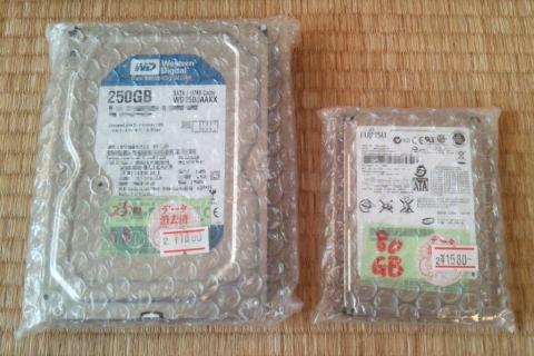 WDのブルーのHDD。ジャンクPCの起動ドライブに最適ですね。ノート用もジャンクPC蘇生に最適。普段のPC-NETのジャンク漁りに滑車がかかります(;=゚ω゚)=333