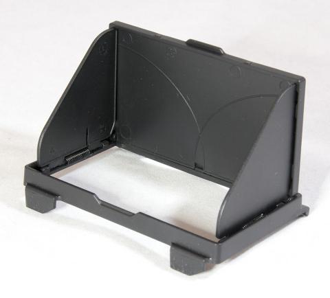 下側と違い、シェードのツメが液晶の縁の真ん中までしかいかないので、液晶を跳ね上げた(回転)させる時にもカメラ本体にツメがぶつかる事はありません。