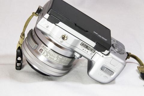 続いて上側をカメラに押し付ければ、液晶上部のツメに固定されます。