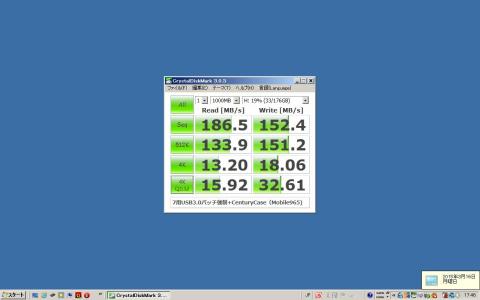 また、古いノートPCに接続させた範囲では、他のケースとそれほど速度は変わらなかった。ExpressCard経由のUSB3.0でさえ連続読み込み180MB/s 連続書き込み152MB/sは出ていた。ただし、ExpressCard(Renesas 720202)の問題で、4KBのランダムは劇遅。これは他のケースでも同じなので、カード側とPC側の問題。