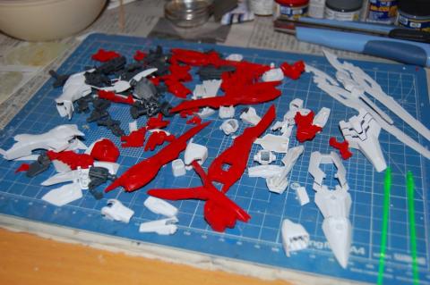 本体やウイングとなる赤いパーツを塗装しました。