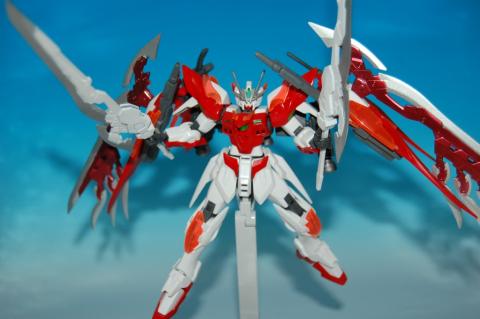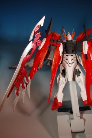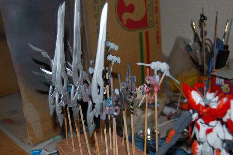 ソード2本は手持ちで白系、ウイングに装着する2本はメタリックレッドで塗装しています。