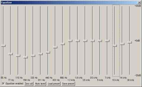 しかし、しばらく聴いていて気付いたのは、バランスの悪さを置いておくと、それぞれの楽器の音色などは決して悪くはないということです。そこでREX-KEB02AKと再び接続して、foobar2000のイコライザーで聴きやすいバランスに調整してみました。