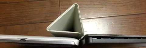 カバーを折りたたむとスタンドになりますが、これは少し倒れやすいです。