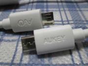 Anker のケーブルと比較して、Aukey の microUSBコネクタは、USBポート接続時の反発力がとてもソフトです。
