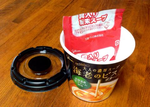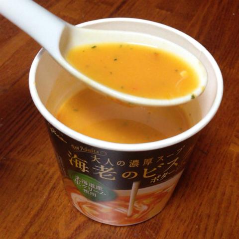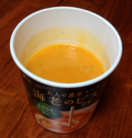 「グリコの大人の濃厚スープ 海老のビスク」です。注文する時、ただ一人反対したのは自分です。「エビ」とか「カニ」は「苦手」なのです。