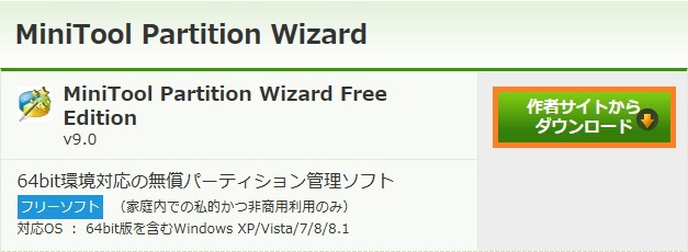 ご存じ、「MiniTool Partition Wizard」は、GUIでパーティションを編集出来るツール。コンシューマーOS(64bit版を含むWindows XP以降)のみをサポートする機能限定版の「Free Edition」(旧称:Home Edition)は、「家庭内での私的かつ非商用」であれば無償で利用出来る事になっています。