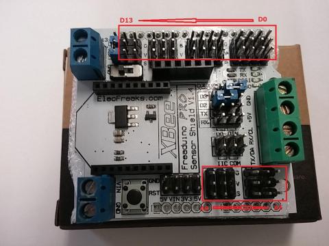 まあ、その他のセンサーモジュールや、サーボモーターをこのシールドに直に接続できるピンヘッダーが搭載されているので、配線等がやりやすいところは、良かったです。