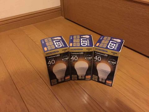 口金E26の40ワット相当。光量511ルーメン。消費電力5ワット。