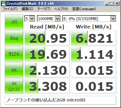 ・ノーブランドで5年使い込んだ 2GB microSD を USB2.0 で接続