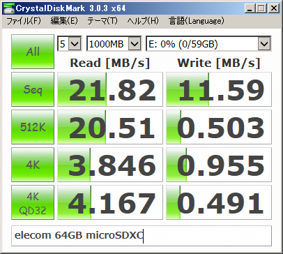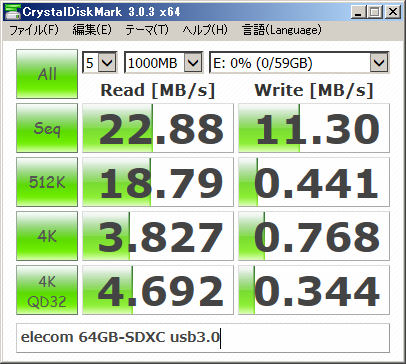 ・ELECOM MF-RMR64GC10 (64GB microSDXC class10) を USB3.0 で接続