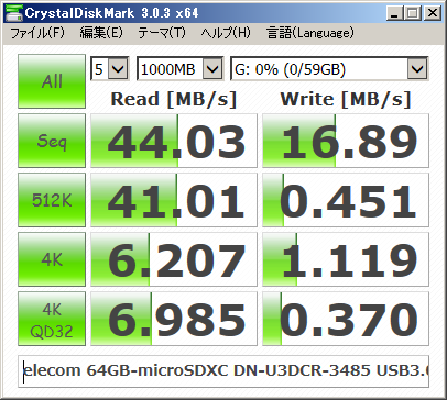 ・参考:UHS-I対応 USB3.0 リーダ DN-U3DCR-3485 と 64GB microSDXCカードの組み合わせ