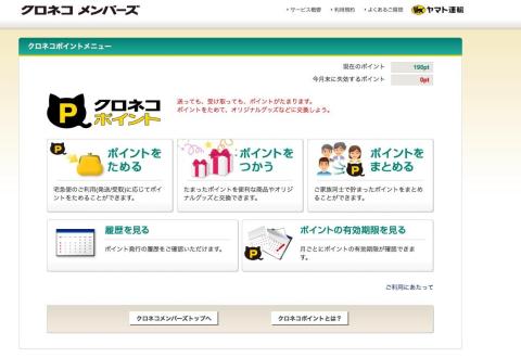 宅急便を送っても、配送を受けても、それぞれ一度につき10ポイントが貯まります。
