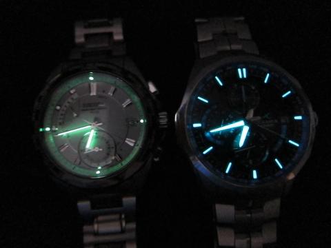 ネオブライト(CASIO:右)とルミブライト(SEIKO:左)の違いです.