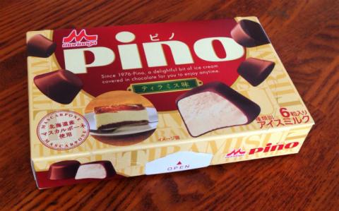 ピノの「ティラミス味」は、マスカルポーネチーズにコーヒーを加えたアイスを、コーヒーチョコでコーティングし、スイーツの定番”ティラミス”の味わいを再現している。
