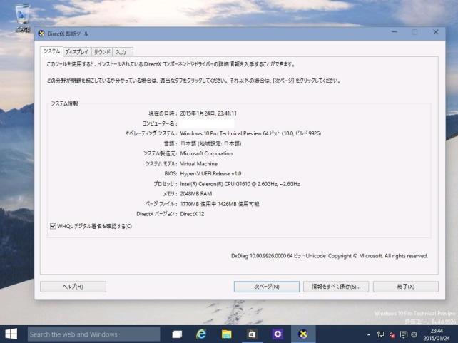 WDDM 1.3のまま。Hyper-Vでは前Buildは出てこなかったが本Buildは出てきた。