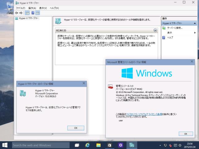 Windows8ではフォーカスしたウインドウの色がほとんど変わらず混乱したが(特にHyper-Vを使っているとウインドウonウインドウなので致命的に訳が分からなくなっていた)、Windows10では色が濃くなっており分かりやすい。