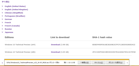 今日(1/24)思っていたより早く日本語対応のTechnical Preview版(Build9926)が