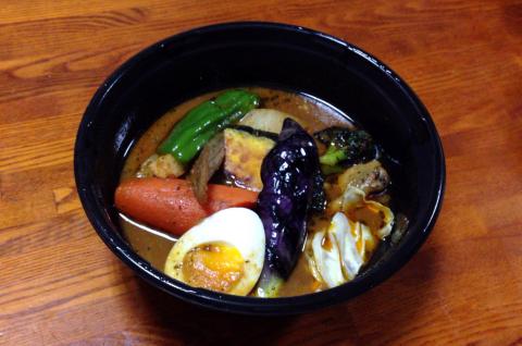 近くの「スープカリーのエソラのスープカリー」です。色々なカレーがありますが、これは「ヤサイ&野菜カリー」です。チキンや玉子、季節の野菜がたっぷり入っています。辛さは「1~5」までで指定出来ます。出前は料金は掛かりませんが、容器代として100円掛かります。自分で容器を持って行けば無料になります。ただし、余り込んでいる時は「出前」は受け付けてくれません。自分で取りに行けば「テイクアウト」として受け付けてもらえます。