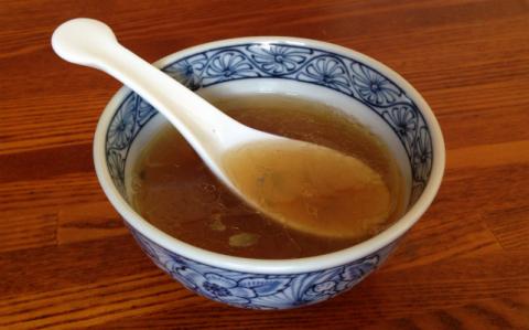 スープは濁りが少なく、金色に輝いています。ちょっとした「中華スープ」を上回る味わいです。「一度沸騰させて溶き玉子を加えて…」などと言う方法もありますが、やっぱり「そのまま」がお薦めです。