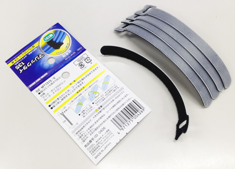 ケーブル等を痛めずに結束するための面ファスナー付きのバンドです。