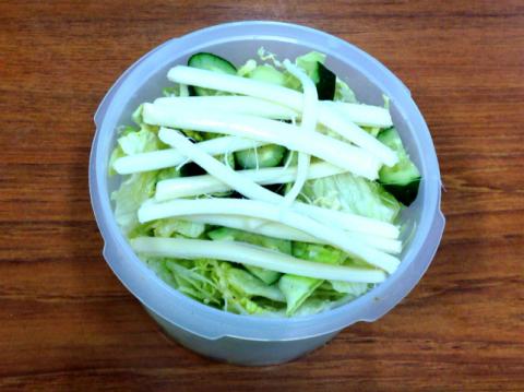 会社でお昼に「裂いて食べる」ってのには、やや抵抗があります…。今日は、お昼に生野菜サラダにトッピングして戴きました。