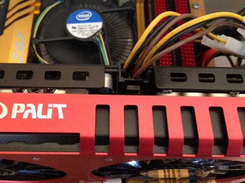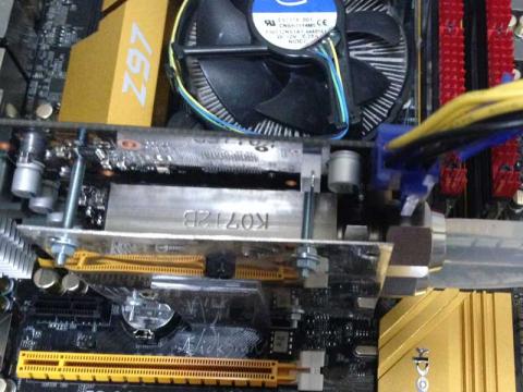 1.インストールは、6ピンの補助電源をつなぐだけ(6ピンが無い場合は付属品の4ピン変換アダプタを使う)。電源は50%出力が最も効率が良いということで、カタログ的には400W電源が推奨されている。家にあった一番大きな電源は350Wなんだけど、これでも動くのは動く\(-o-)/ある意味・・・すごい。