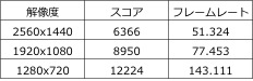 次いで、2560x1440でPalitのThunderMasterからGTX 960のグラフィックコアとメモリのクロックを少しずつ上げて行った結果。