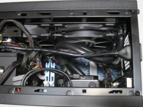 Z97マザーボード,550WのATX電源,HD5870ビデオカード,240mm簡易水冷CPUクーラーが,ぎゅーぎゅーに収まっています.が,Mini-ITXケースとは思えないPCスペックになりました.組み込みには少し工夫は必要ですが,とてもよく考えられたレイアウトです.