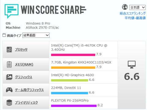 最低スコアが8.2で,mini-ITXとしては比較的性能の揃ったPCに仕上がったと思います.