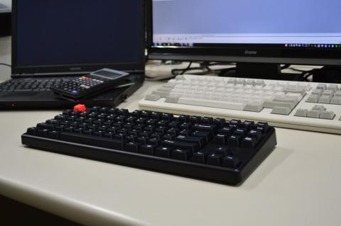 その打鍵音は、まさに青軸です。 実は、職場での撮影なのですが、みんなが帰った後に撮影しています。