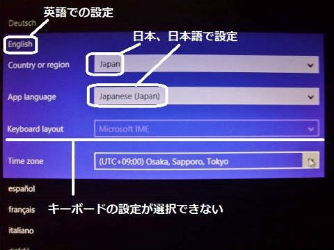 設定する言語が「English」 のままですね、国を日本に、言語を日本語に、タイムゾーンを東京には設定出きるのですが、キーボードは設定不可になってます? なんで?