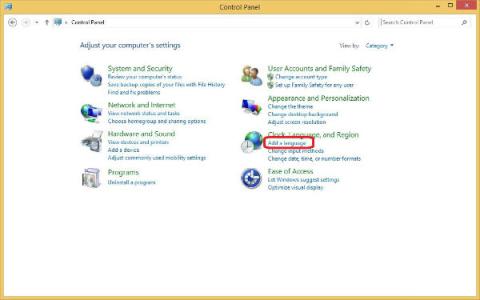 日本語への設定を行いましょう、「ControlPanel」ー「Add Lanuguage」をクリックします。