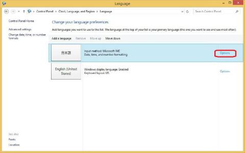 一応は日本語はインストール?されている?のか「日本語」の右端の「Option」をクリックします。