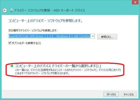 下に有る、「コンピューター上のデバイスドライバーの一覧から選択します」をクリックします。