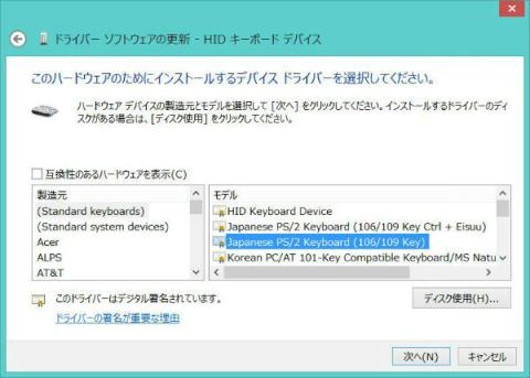これでキーボードのドライバーソフトウエアが正常に更新出来ました。