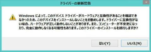 「ドライバーの更新警告」が出てきますが、「はい」ですね。
