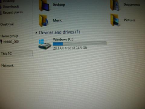 eMMC全体の構成は、UEFIが100MB、Cドライブが24.6GB、Windows8.1のリカバリー領域が4.3GBになります、因みに下記ではDドライブにUSBHDD繋いでいます。