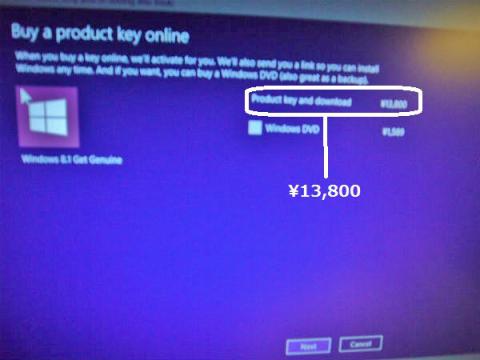 新たなプロダクトキーを入力するか or プロダクトキーの2つの選択肢しか有りません、勿論、販売店からはプロダクトキーは貰っていません。