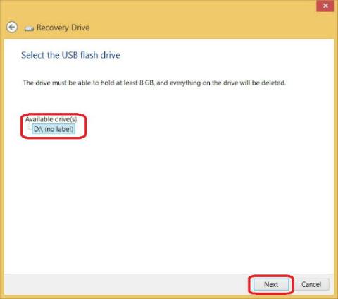 普通の人はUSBメモリーを使用するのでしょうが、私はHDDが余っているのでUSBHDDにリカバリードライブを作ります、DドライブとしてUSBHDDが認識されています、「Next」をクリックします。