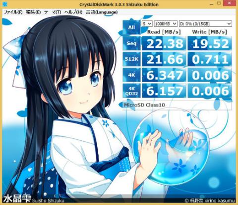 MicroSD(トライセンドのClass 10 TS16GUSDHC10)で測定しました、カードリーダーはiBUFFALO BSCR12U2BKとの比較になります。