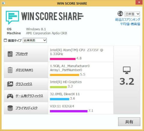 基本的にストレージのeMMC意外は同じはずなのですが?、何故かグラフィックス関係が低いですね。