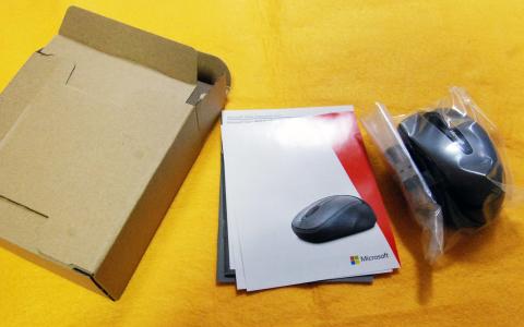 マウスと電池とレシーバがビニール袋に一緒に入っています