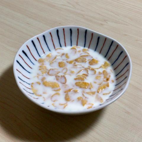 牛乳にコーンを浸して直ぐ食べる人と、しばらく待ってから食べる人と居るみたいです。
