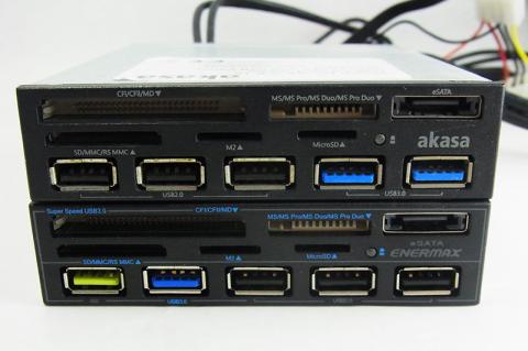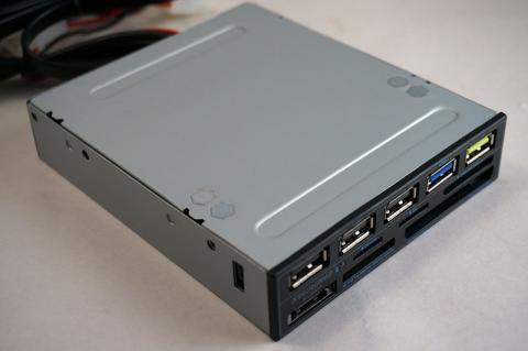 3.5インチベイに収めるUSB3.0接続カードリーダー+USBポート。5つのUSBポートとカードリーダーをぎっちりと収めたレイアウトはAINEX AK-ICR-16&AK-ICR-16Aに酷似している。