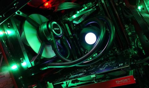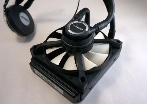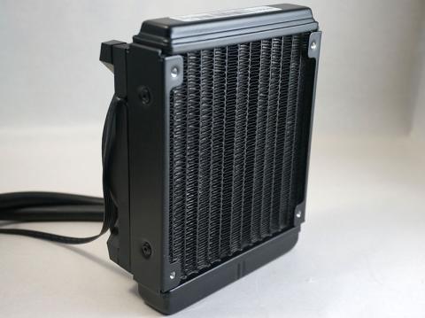 黒で統一された本体に白いファンブレードとLED内蔵の水冷ヘッドがいいアクセントになり、内部が見えるケースに搭載してもビジュアルは良好だ。似たり寄ったりのデザインが多い簡易水冷の中ではこの特殊ポンプ配置が存在感を出している。