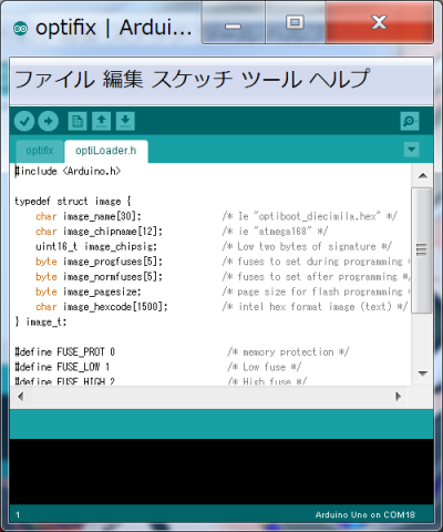 ブートローダー書き込み用のスケッチはこちらで公開されているoptifix.zip