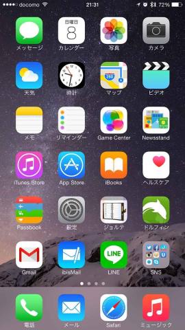 iPhone6 Plusでは、このような表示になります。Bluetoothのマークの右を見てください。ヘッドセットのバッテリー残量が表示されます。ヘッドセットの多くは、本体でバッテリー残量がわかりません。これは非常に便利になりましたね。