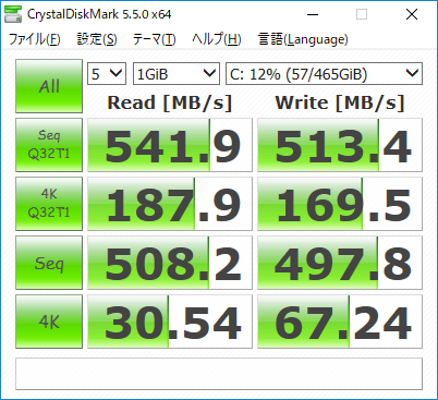 これでCoffee-Lakeに更新したら、どれくらいの速度になるのか…SATA接続だから、あんまり変わらないかも知れませんが。